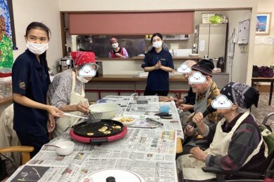 長寿庵は家族のようなありかたを大事にしています。 通い(デイサービス)の方達が楽しく過ごせるよう、あたたかで、安心感のあるサポートを心掛けています。